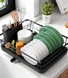 – Kitsure Dish Drying Rack for Kitchen Counter, Stainless Steel Sink Organization and Storage Essentials with Cutlery Holder, Home and Appartment Decor, 12”W x 15.5”L, Black