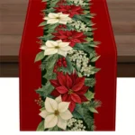 Christmas Poinsettia Berry Printed Table Runner 2D Flat Print FestiveDecor Christmas Dining Table Decoration Elegant Charming
