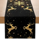 Reindeer and Snowflake Design Table Runner Golden Christmas Theme Suitable for Christmas parties, family holiday decorations