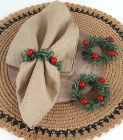 6 Pcs Red Fruit Pine Needle Flower Rings, Thanksgiving, Christmas, Wedding Table Decorations, Napkin Rings