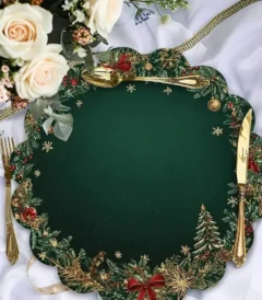 4-Piece Set Round Christmas Placemats Table Mats Emerald Gold Pattern Festive Placemats Christmas Decor