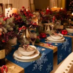 Christmas Navy Blue Snowflake Table Runner – Winter Xmas Decor for Kitchen/Dining Table, Christmas Decoration