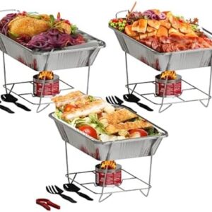 Disposable Chafing Dish Buffet Set with Fuel – 3 Pack Food Warmers for Parties & Catering