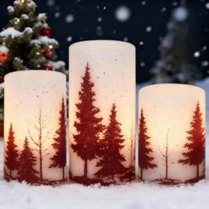 Flameless Christmas Candles with Timer – LED Battery Operated Pillar Candles 3D Flickering Flame