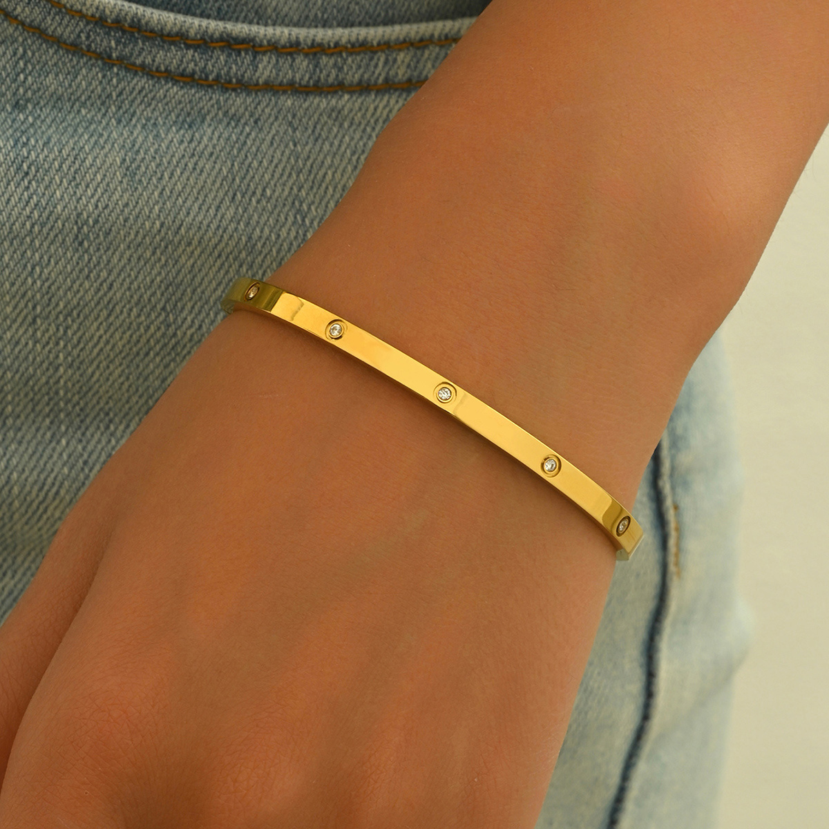 Lxalry18K Gold Plated Minimalist Rhinestone Bracelet