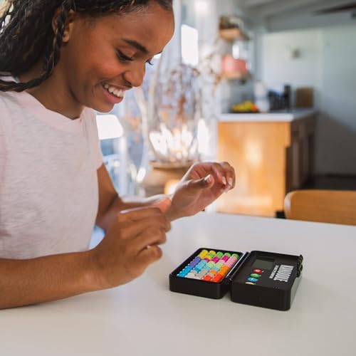 The game is constructed from durable, high-quality plastic designed for frequent handling. The puzzle pieces are molded into smooth, interconnected spheres in various vibrant colors, while the protective carrying case features a secure hinge and an integrated LCD timer screen with tactile rubber buttons.