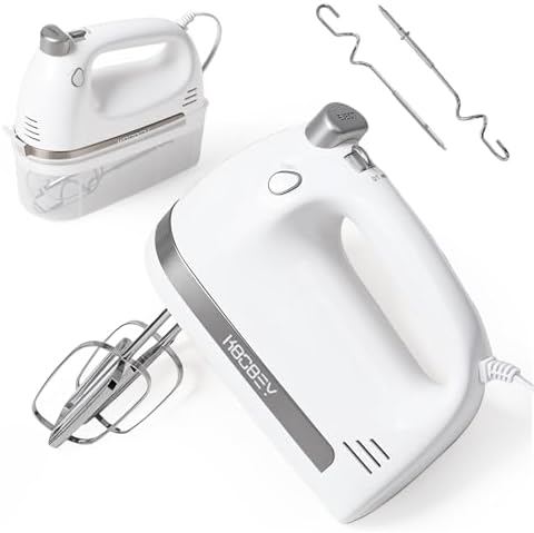 KBOBEY 450W 5-Speed Electric Hand Mixer with Turbo, Case & Attachments White