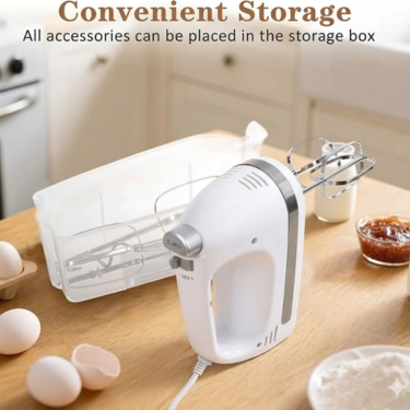 【Comfortable Grip & Ready-to-Use Corded Power】 The kitchen hand mixer ergonomic handle is designed for comfort, reducing hand fatigue even during longer mixing sessions. Enjoy consistent, uninterrupted power with the corded design—no waiting for batteries to charge, so it's always ready when you are |