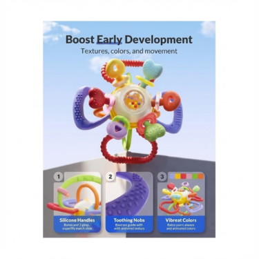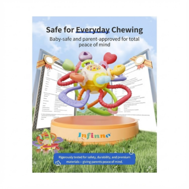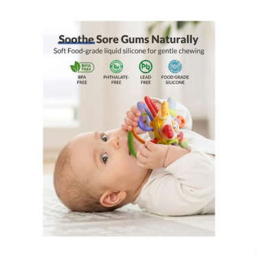Soothe your baby’s teething discomfort while supporting early development with our Baby Teething Toy, made from 100% food-grade BPA-free silicone. Designed for infants aged 0–12 months, this safe, durable, and Montessori-inspired teether offers comfort, sensory stimulation, and engaging play.