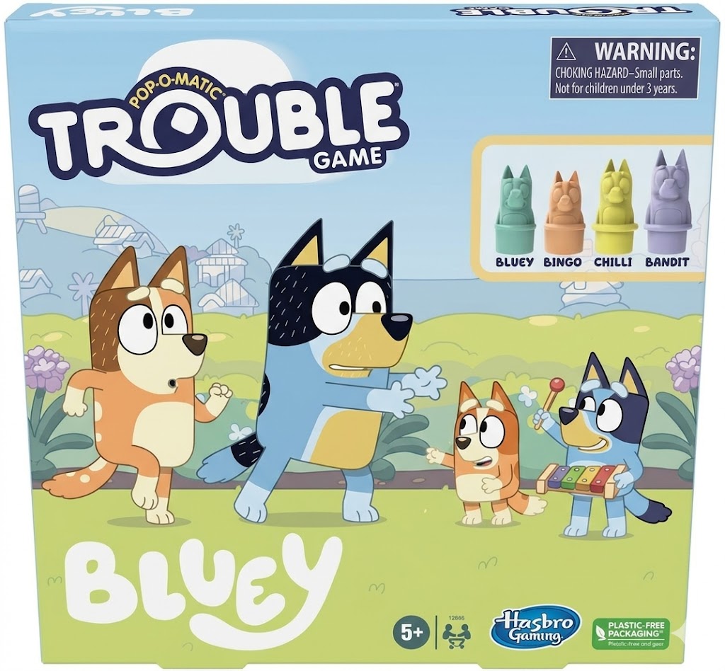 Durable and Portable: Crafted with high-quality plastic, this Trouble Bluey Edition game is built to last and easy to take along on family game nights or on-the-go fun |