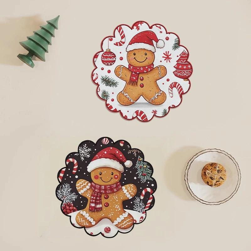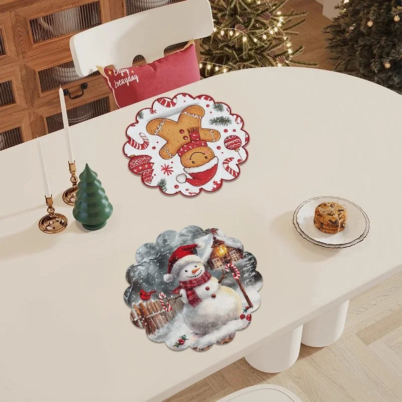 4pcs Cartoon Santa Claus Round Coaster Christmas Placemat Snowflake Dining Table Heat Insulation Pad Xmas Decor