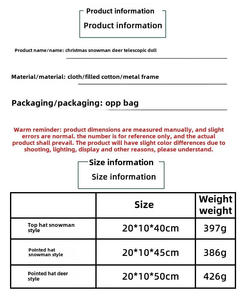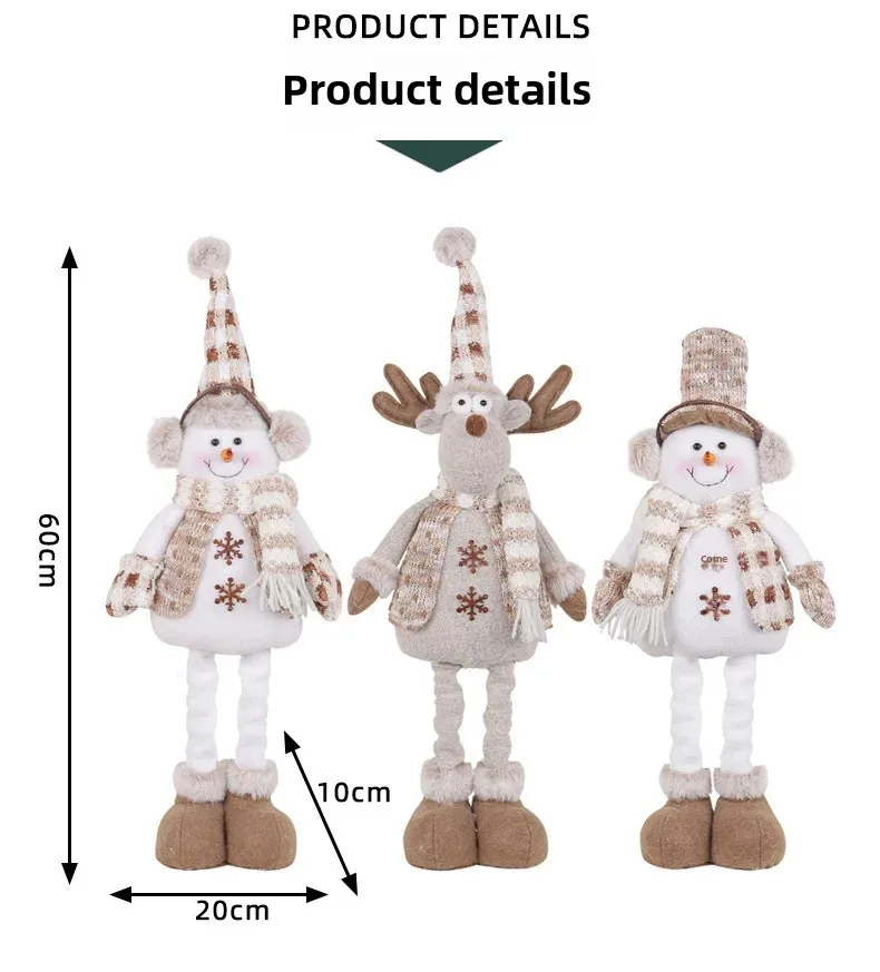 Add festive charm to your space with these knitted telescopic Christmas dolls, featuring a snowman, reindeer, and Santa Claus design — perfect for home or shop displays!
