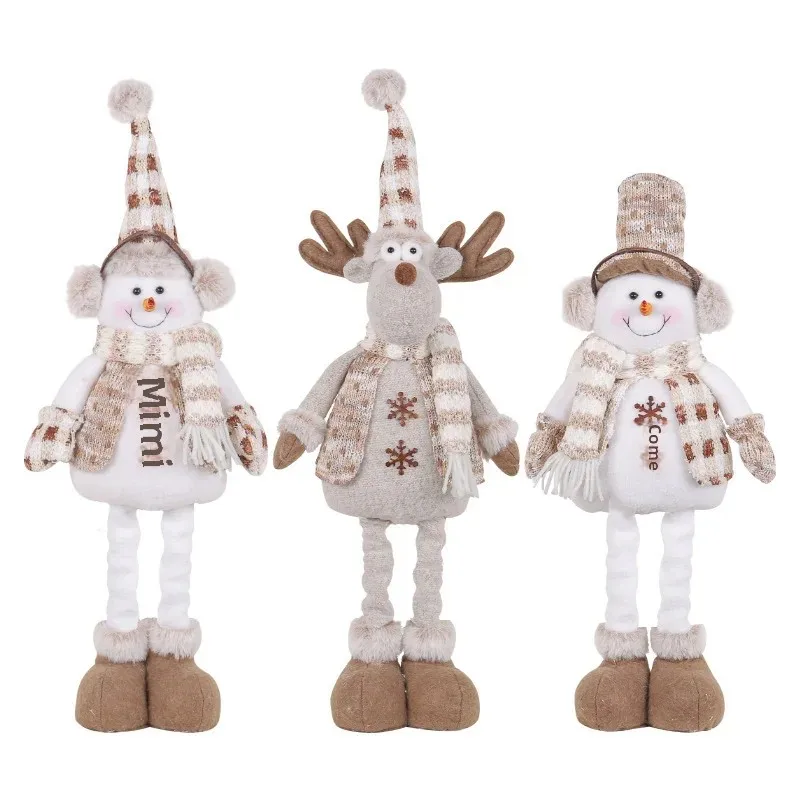 Christmas Telescopic Doll Decorations Set – Knitted Snowman, Deer & Santa Figurines
