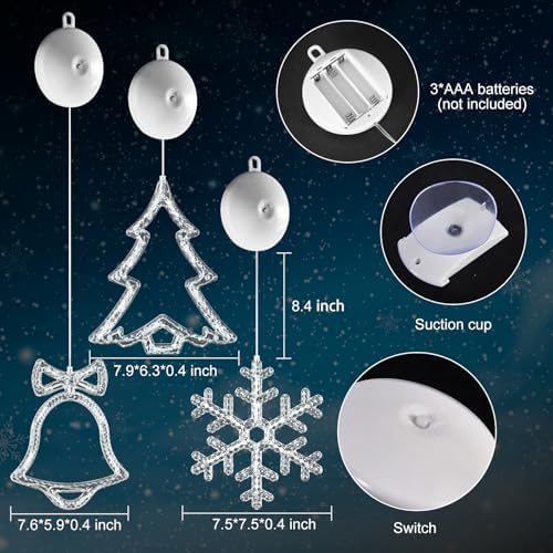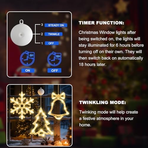 Christmas Window Lights 3-Pack with Timer – LED Snowflake Tree Bell Decorations