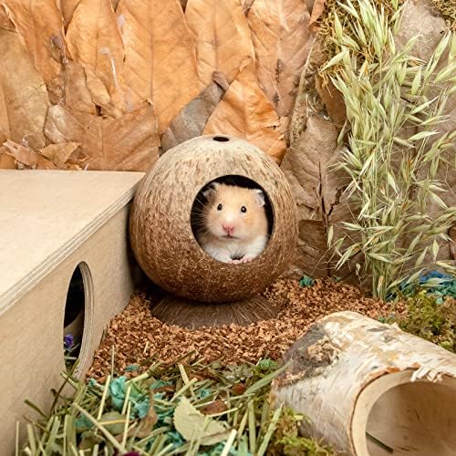 Provide your hamster, gerbil, mouse, or sugar glider with a safe Coconut Hut Hamster House Bed. Crafted from reusable coconut shell, this eco-friendly habitat offers a cozy hideout with easy in-out access through the entrance.