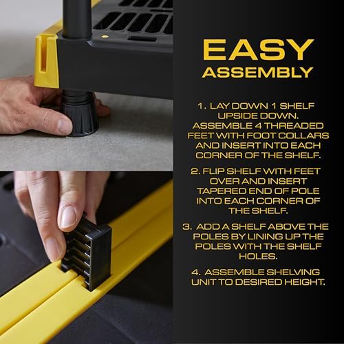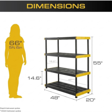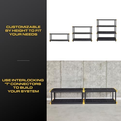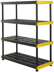 Organize your garage, basement, workshop, or outdoor space with this heavy duty plastic storage shelving unit. Built from contractor-grade, weather-resistant plastic, this 4-tier shelving system delivers exceptional strength with 200 lbs capacity per shelf, making it ideal for tools, equipment, storage bins, and seasonal supplies.