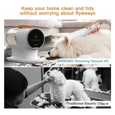 Transform your pet grooming routine with the AIRROBO PG100 Dog Grooming Vacuum Kit. Featuring 12000Pa strong suction, it captures 99% of pet hair instantly, keeping your home fur-free during grooming sessions.