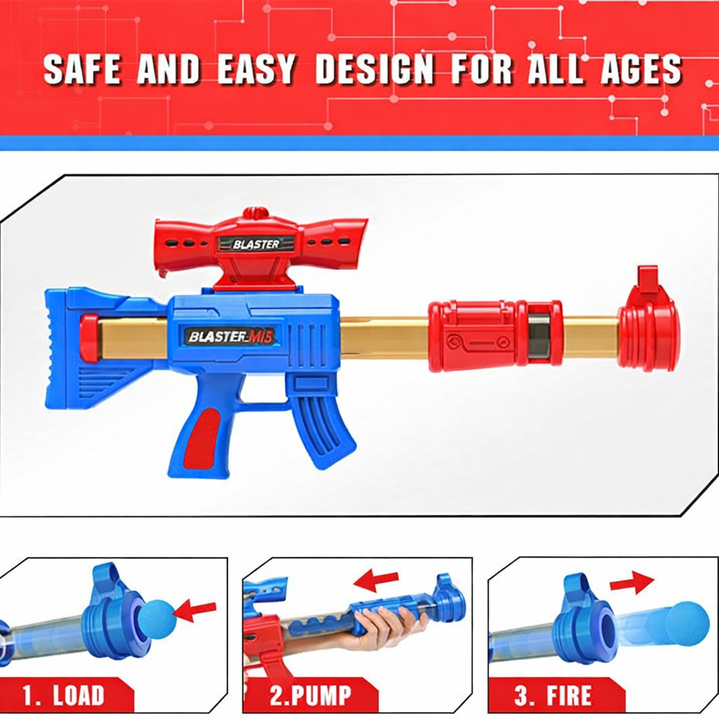 Designed for straightforward operation, this game functions using a manual air-pressure mechanism that requires no batteries. Players load the foam balls into the blasters, aim at the targets, and use the air-pump action to launch projectiles toward the mesh net. The target stand provides a stable base, allowing for quick setup on flat surfaces, while the scoring zones on the net encourage skill-building and friendly competition.