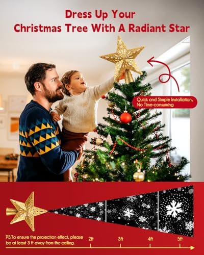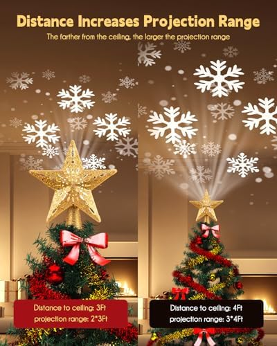 •  Magical LED Snowflake Projection: Transform your holiday décor with this LED Christmas Tree Topper featuring a built-in rotating snowflake projector that fills your room with beautiful animated snowflake patterns.
