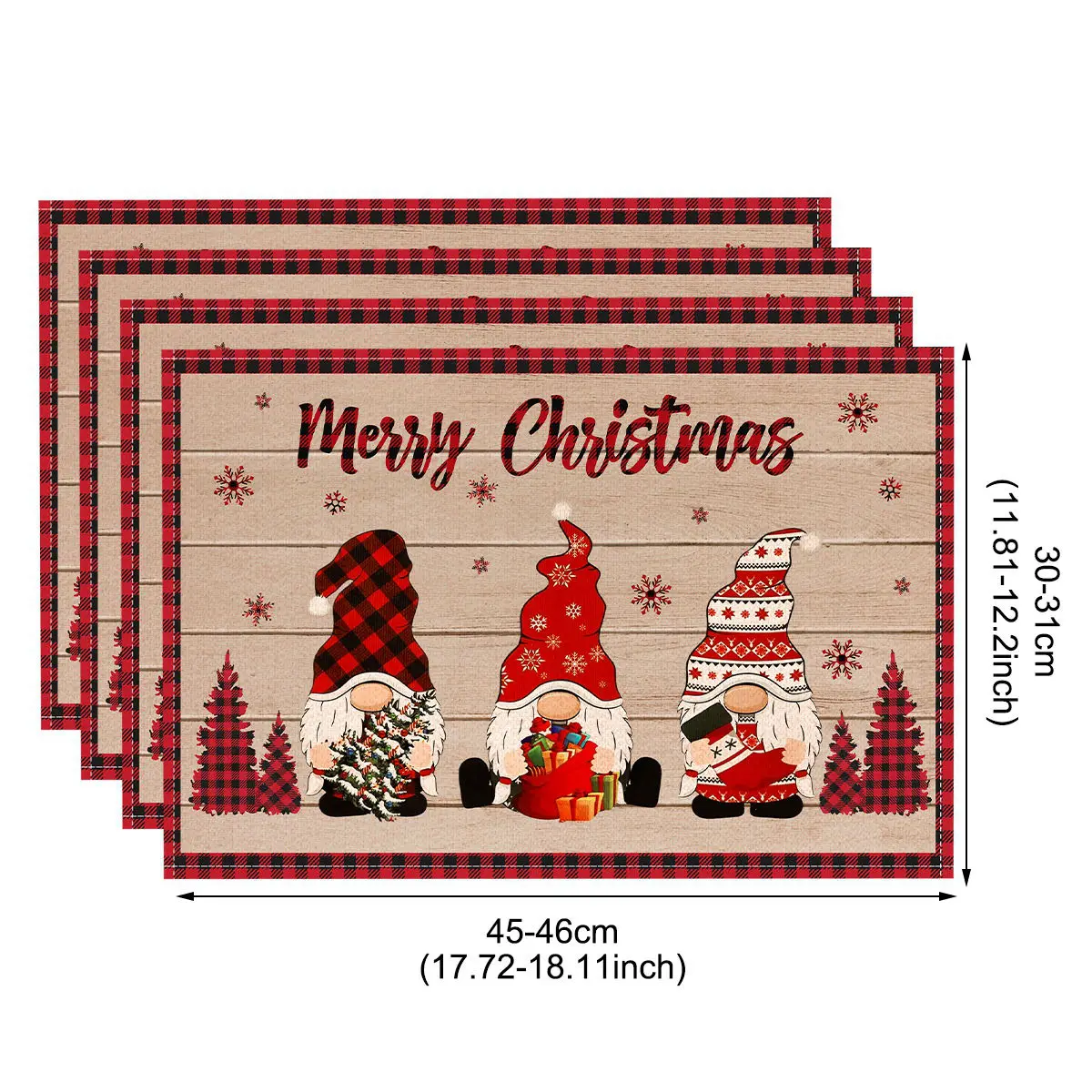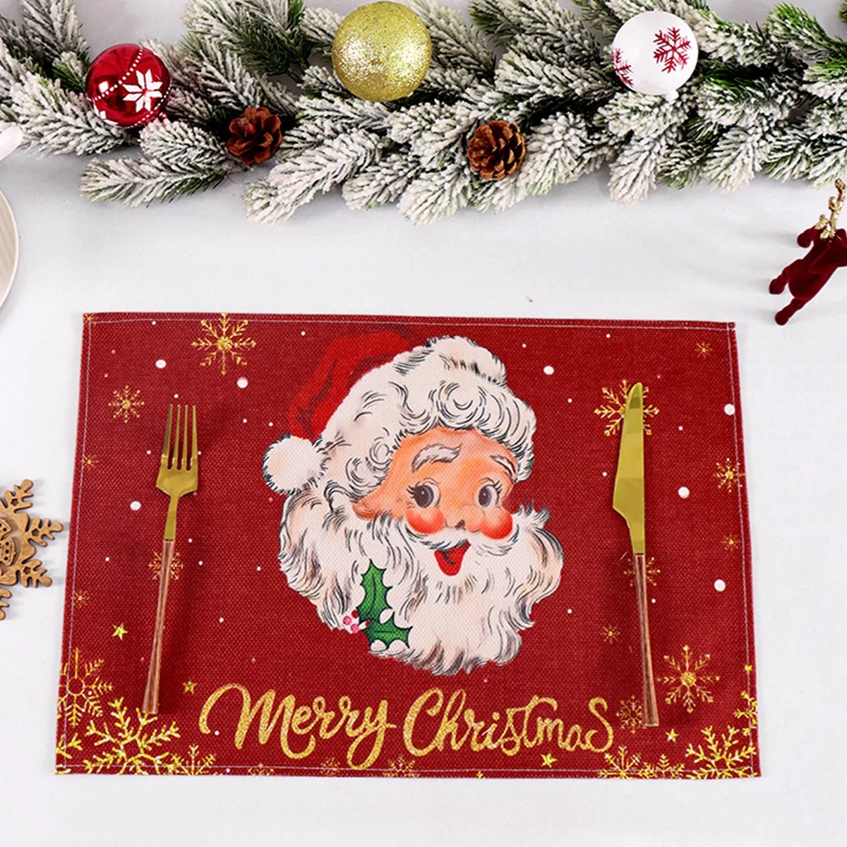 Linen Christmas Placemats Set Santa Claus Print Holiday Table Décor
