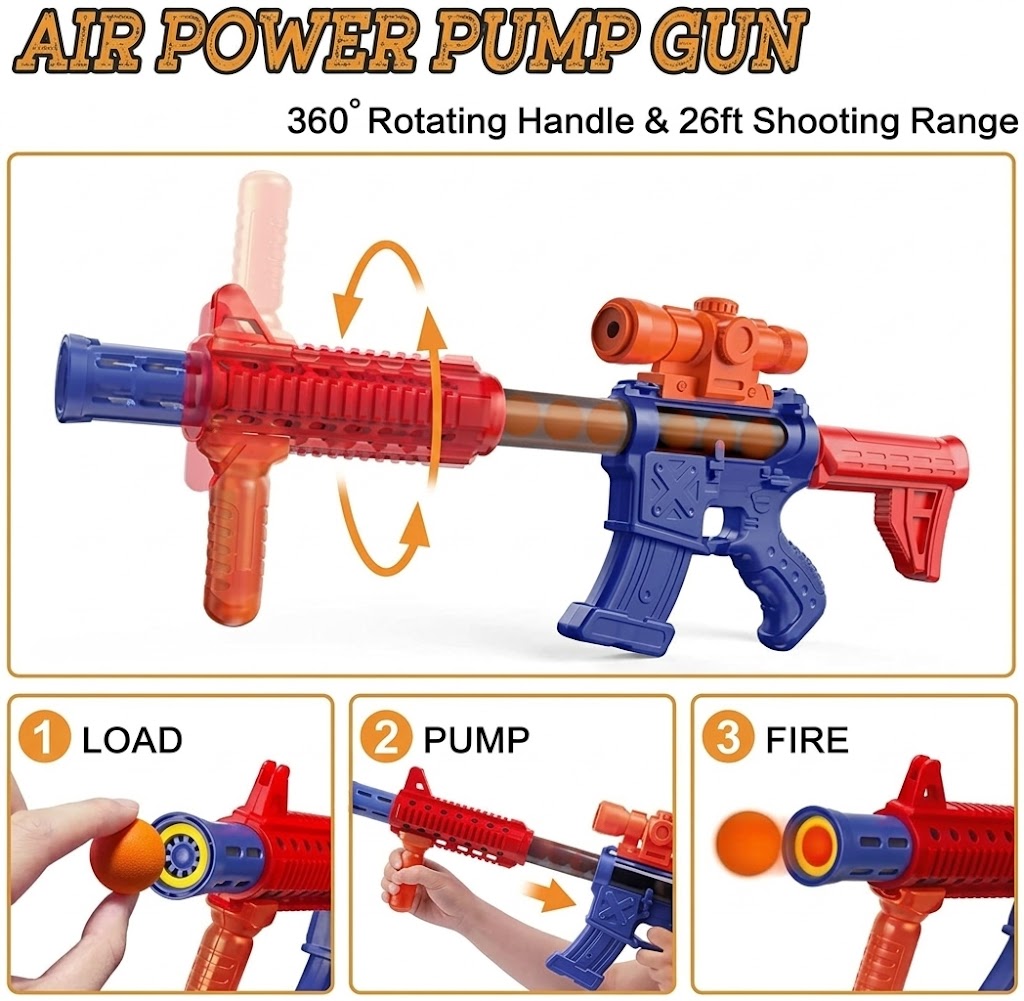 • 2 x Air-Powered Foam Ball Blasters