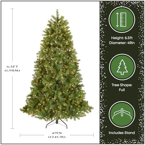 6.5 ft Pre-Lit Christmas Tree – Douglas Fir Artificial Tree with 650 Clear Lights & Stand | Feel Real Technology