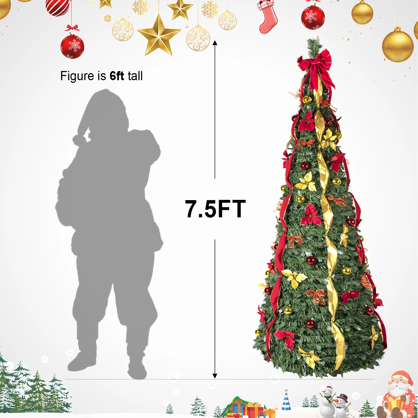 Pre-installed red & gold ornaments, bows, ribbons & flowers.