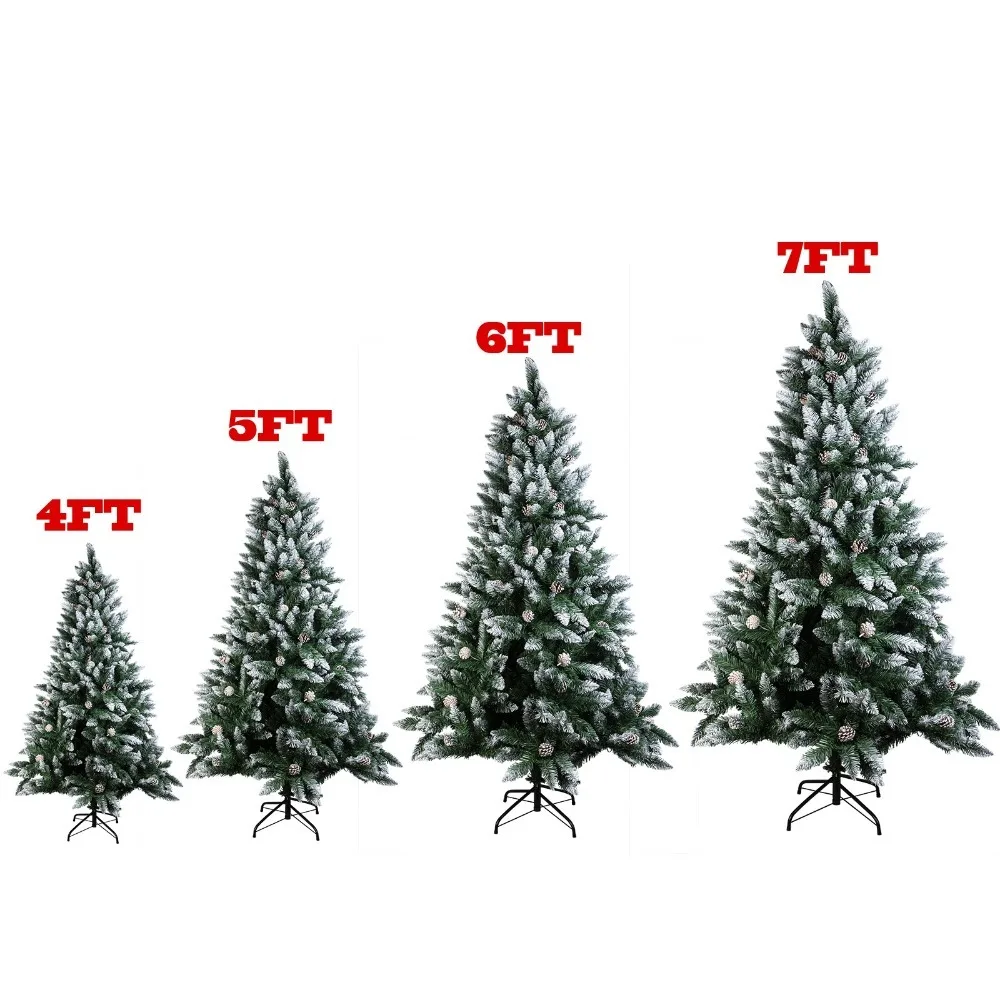 Snow Flocked Artificial Christmas Tree with Pine Cones – Premium 4ft 5ft 6ft 7ft Hinged Xmas Tree