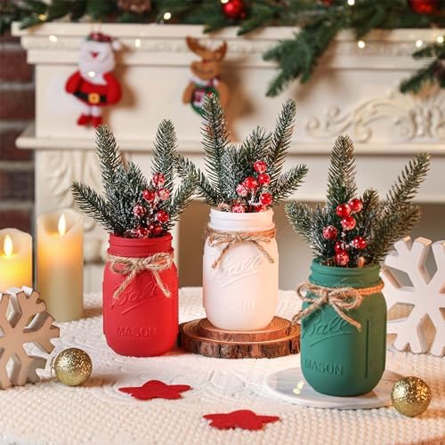 Create a cozy winter ambiance with this charming mason jar centerpiece perfect for elevating your Christmas table décor and seasonal home styling.