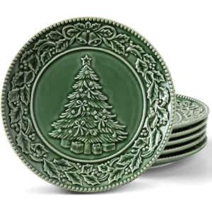Green Ceramic Christmas Tree Plates – 8 Inch Salad Plates Set for Holiday Dining